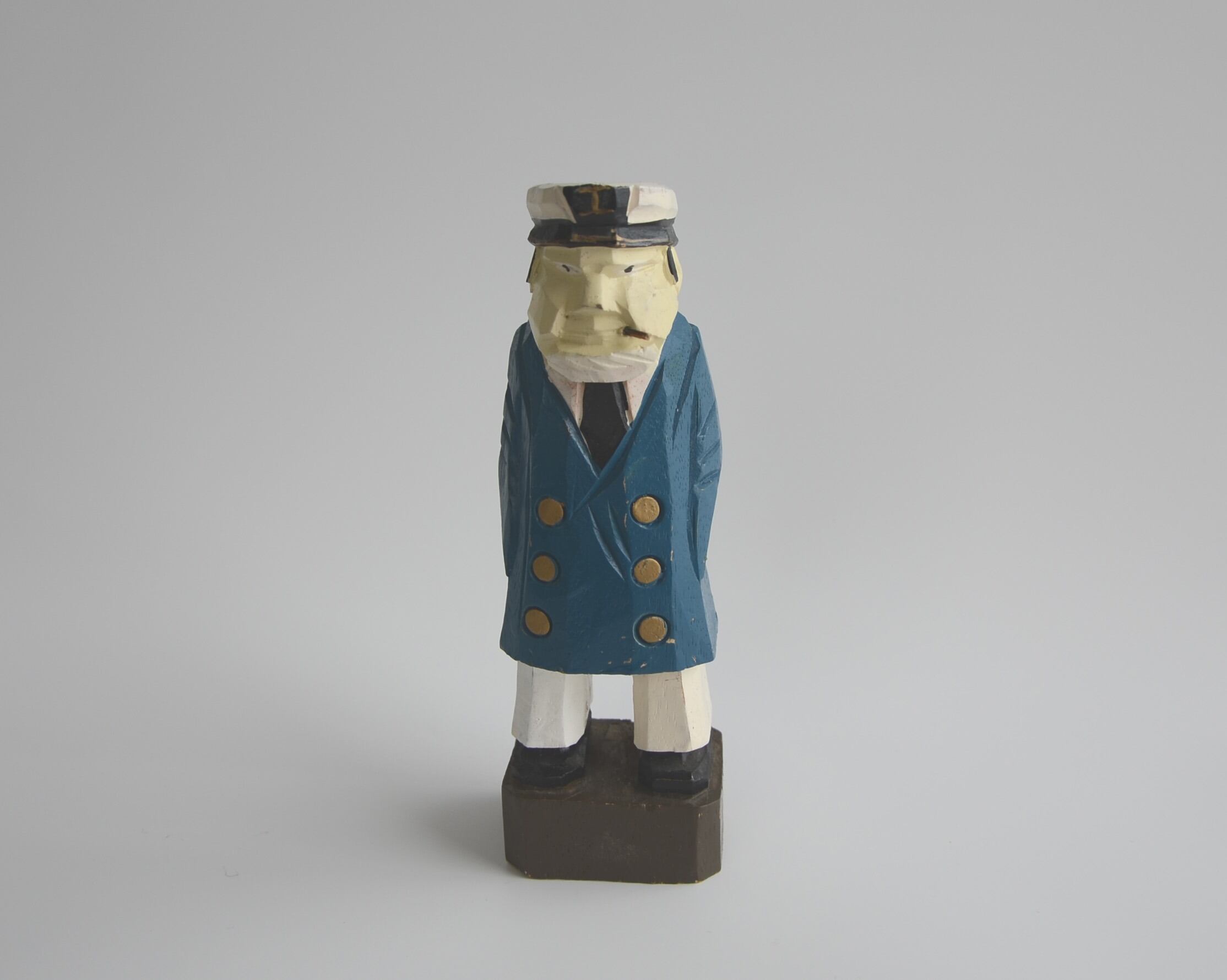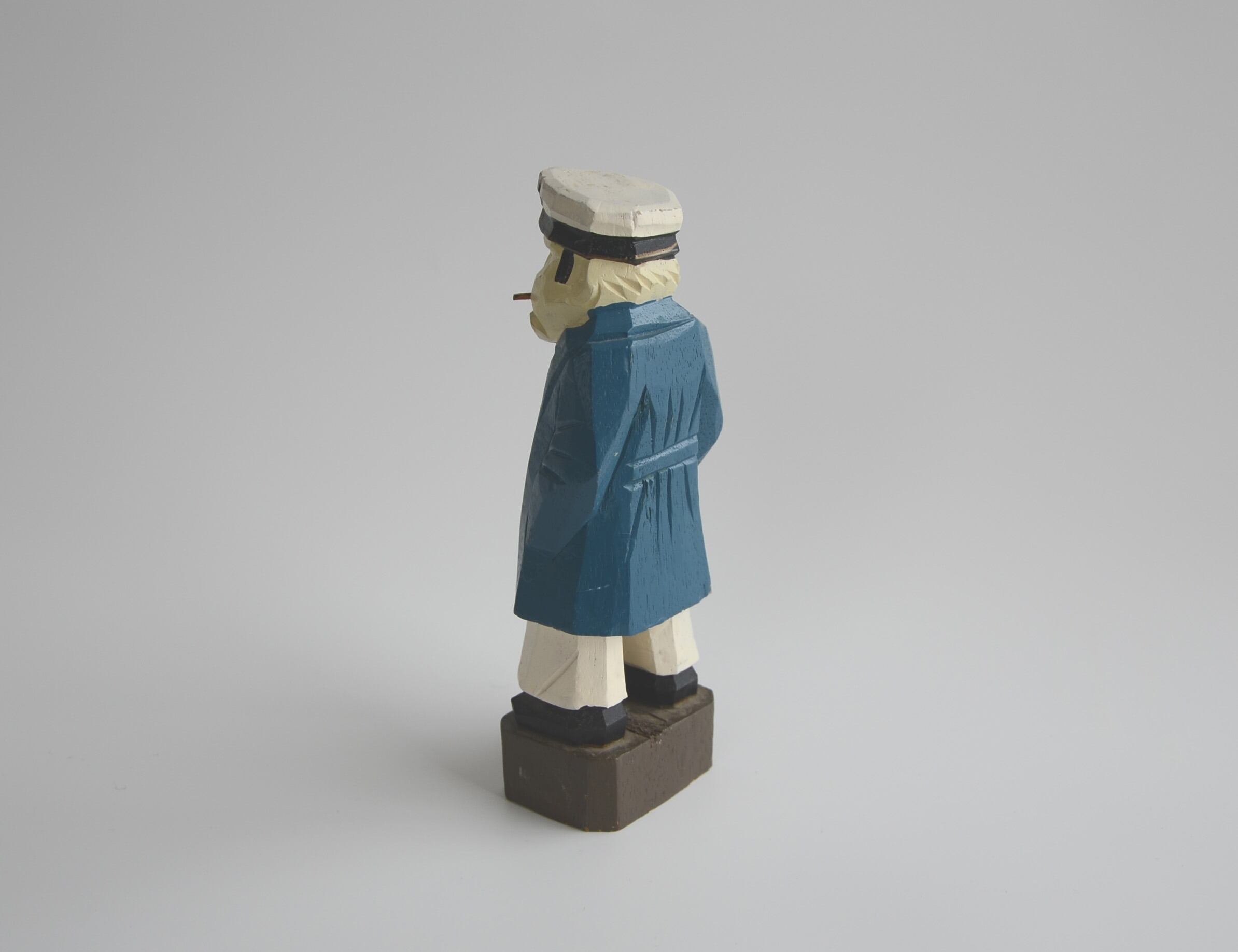 くわえ煙草の船長さんは、木彫りならでわの手のぬくもりも感じられ、愛着が湧く一点もの。
