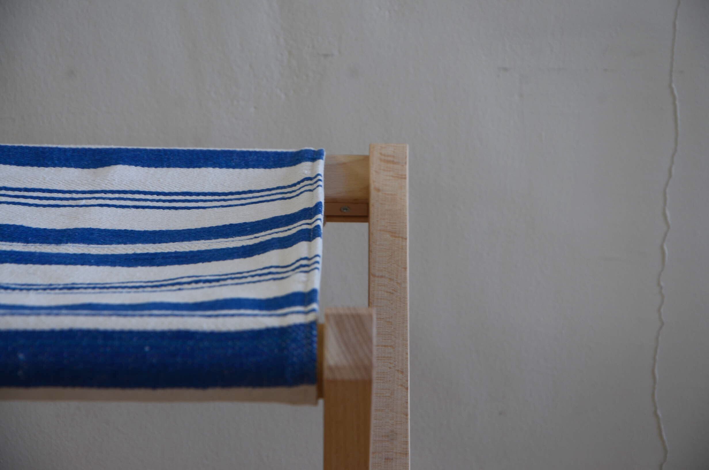 スウェーデンヴィンテージのストライプ柄のファブリックを使い、オリジナルのフォールディングチェアを製作いたしました。