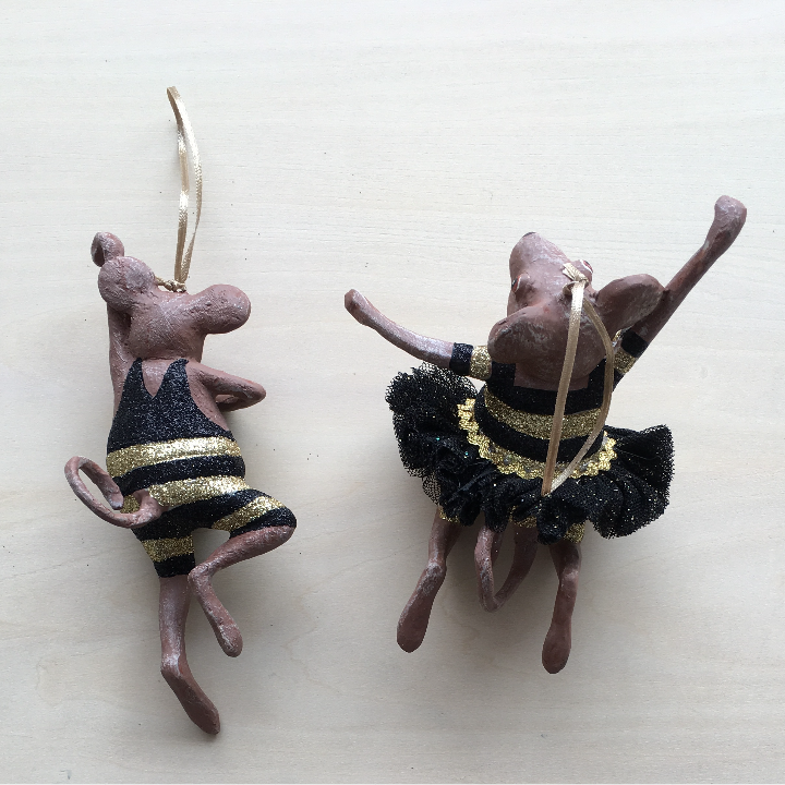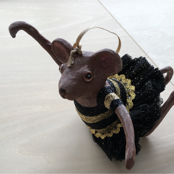 キラキラのお洋服を来た可愛いねずみちゃんのオーナメントです。